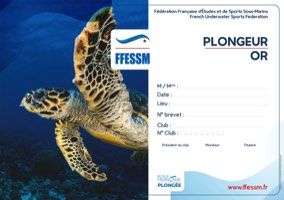 Le “plongeur d'or” ouvre au jeune plongeur les portes de la plongée d'exploration en scaphandre, jusqu'à 12 m de 10 à 12 ans et jusqu'à 20 m de 12 à 14 ans, au sein d'une palanquée guidée.