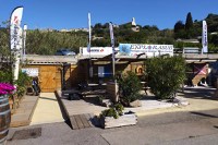 Le bateau est idéalement amarré en face du local, avec un quai privatif aménagé pour l'équipement des bouteilles et pour l'embarquement.