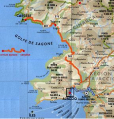 A la sortie d'Ajaccio (Parc d'activités de Mezzavia), prenez la D81 en direction de Sagone – Cargèse – Porto pour environ 50 min.