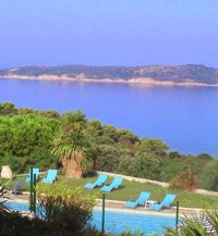 3 ensembles situés à 2000 m du village, orientés plein Sud au dessus de la plage de Menasina accessible à pied en 5 min, avec piscine (Hélios 1).