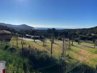 A l'entrée Sud du village, en surplomb de la baie et du port de plaisance, vue panoramique de la pointe de Cargèse jusqu'aux Iles Sanguinaires à l'horizon.